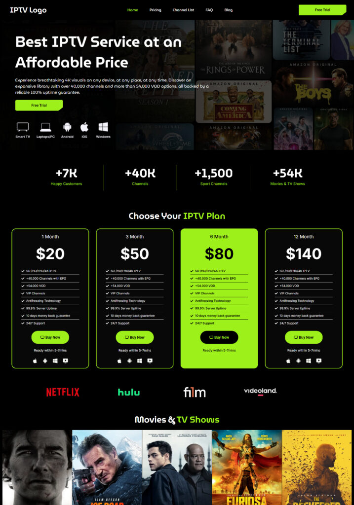 Koyu siyah tonların canlı açık yeşil vurgularla kusursuz bir şekilde harmanlandığı ve heyecan verici bir dijital deneyim yaratan bir WordPress IPTV şablonu olan ShadowStream'in şık ve esrarengiz dünyasına kendinizi bırakın. ShadowStream sadece bir web sitesi değil, zarafet ve son teknoloji tasarım dünyasına bir yolculuk vaat ediyor. Sezgisel arayüzü ve duyarlı düzeni, web sitenizin profesyonel yetenek ve dinamik stille parlamasını sağlar. ShadowStream'i seçin ve çevrimiçi varlığınızı her ziyaretçinin daha fazlasını arzuladığı çarpıcı, unutulmaz bir başyapıta dönüştürün.